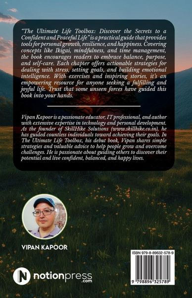 "The Ultimate Life Toolbox: Discover the Secrets to a Confident and Peaceful Life" is a practical guide that provides tools for personal growth, resilience, and happiness. Covering concepts like Ikigai, mindfulness, and time management, the book encourages readers to embrace balance, purpose, and self-care. Each chapter offers actionable strategies for dealing with stress, setting goals, and building emotional intelligence. With exercises and inspiring stories, it's an empowering resource for anyone seeking a fulfilling and joyful life. Trust that some unseen forces have guided this book into your hands.
