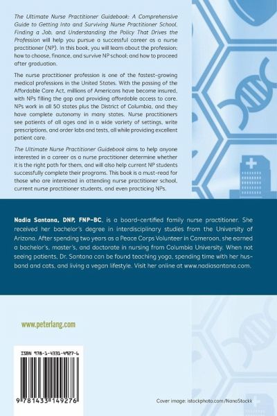 "Dr. Nadia Santana, DNP, FNP-BC, has created a true masterpiece. As someone who has been professionally active in the nursing profession since 1987, I was not only incredibly proud to read her thoughtful and detailed guidebook, but I learned a lot myself. Dr. Santana's guidebook is essential for anyone who is interested in becoming a nurse practitioner-both those who are already nurses and those who are starting out in the profession. Dr. Santana has beautifully illustrated what makes nurse practitioners a crucial and integral part of achieving quality health care for consumers in the US." -Dr. Dyan Summers, DNP, ANP-BC, MPH, CTH Jonas Scholar; Nurse Practitioner who diagnosed, treated, and reported the first American recreational traveler to be infected with the ZIKA virus