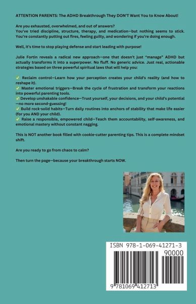 Are You Tired of the ADHD Battle? Discover the 3 Spiritual Laws That Will Transform Your Parenting from Chaos to Calm! Attention parents of ADHD kids! If you're overwhelmed, exhausted, and constantly battling meltdowns, impulsivity, and endless energy, you are NOT alone. The traditional advice isn't working-timeouts, rigid routines, and behavior charts just leave you feeling like a failure. It's time to ditch the frustration and unlock a game-changing approach that actually works. What if ADHD isn't the problem? What if it's the key to unlocking your child's highest potential? In The Ultimate Parent's Guide to ADHD Kids and Hyperactivity, Julie Fortin delivers a powerful, no-nonsense roadmap based on three transformational spiritual laws that will revolutionize how you see and support your child. This isn't about slapping a diagnosis on your kid and feeling doomed-this is about shifting your mindset, taking control, and creating a home filled with peace, connection, and growth. Inside, You'll Discover: ¿ The Truth About ADHD & Reality Creation - Learn how your perception of ADHD is shaping your child's experience and how to flip the script to see their strengths instead of struggles. ¿ Why Labels Are Holding Your Child Back - Break free from the limiting mindset that keeps your kid trapped in frustration and failure. ¿ The Power of Your Reactions - Master the 5-Second Empathy Reset and transform tantrums and defiance into teachable moments. ¿ Chaos-Proof Parenting Strategies - Use visual schedules, "chunking," and real-world problem-solving games to set your child up for success. ¿ How to Trust the Process & Let Go of Overwhelm - Stop chasing perfection and start building lasting confidence in your parenting decisions. This Book is NOT for You If... ¿ You're looking for a quick fix or a one-size-fits-all parenting hack. ¿ You believe your child needs to be "fixed" instead of understood. ¿ You're not ready to challenge the traditional ADHD narrative and embrace a new approach. But if you're ready to... ¿¿ Create a home of calm instead of chaos ¿¿ Equip your child with emotional regulation skills that actually work ¿¿ Build a stronger bond with your ADHD child ¿¿ Finally stop second-guessing yourself and step into your role as an empowered parent... Then this book will change everything. Your child's ADHD is not a curse-it's a GIFT waiting to be unlocked. Start today. Download Now & Take the First Step Toward Parenting with Purpose!