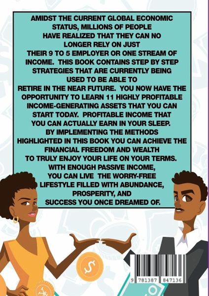 AMIDST THE CURRENT GLOBAL ECONOMIC STATUS, MILLIONS OF PEOPLE HAVE REALIZED THAT THEY CAN NO LONGER RELY ON JUST THEIR 9 TO 5 EMPLOYER OR ONE STREAM OF INCOME. THIS BOOK CONTAINS STEP BY STEP STRATEGIES THAT ARE CURRENTLY BEING USED TO BE ABLE TO RETIRE IN THE NEAR FUTURE. YOU NOW HAVE THE OPPORTUNITY TO LEARN 11 HIGHLY PROFITABLE INCOME-GENERATING ASSETS THAT YOU CAN START TODAY. PROFITABLE INCOME THAT YOU CAN ACTUALLY EARN IN YOUR SLEEP. BY IMPLEMENTING THE METHODS HIGHLIGHTED IN THIS BOOK YOU CAN ACHIEVE THE FINANCIAL FREEDOM AND WEALTH TO TRULY ENJOY YOUR LIFE ON YOUR TERMS. WITH ENOUGH PASSIVE INCOME, YOU CAN LIVE THE WORRY-FREE LIFESTYLE FILLED WITH ABUNDANCE, PROSPERITY, AND SUCCESS YOU ONCE DREAMED OF.