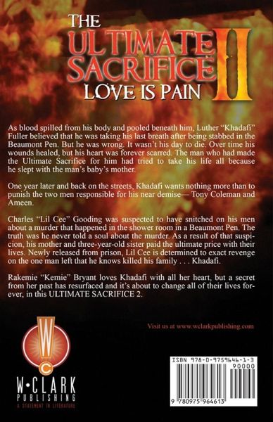 As blood spills from his body and pools beneath him, Luther Khadafi Fuller believes he is taking his last breath after being stabbed in the Beaumont Penitentiary. But he is wrong. It isn't his day to die. Over time his wounds heal, but his heart is forever scarred. The man who has made the Ultimate Sacrifice for him has tried to take his life. One year later and back on the streets, Khadafi wants nothing more than to punish the two men responsible for his near demise, Tony Coleman and Ameen. Charles Lil' Cee Gooding is suspected of snitching on his men about a murder that happened in the shower room in a Beaumont Pen. The truth is he never told a soul about the murder. As a result of that suspicion, his mother and three-year-old sister pay the ultimate price with their lives. Newly released from prison, Lil' Cee is determined to exact revenge on the one man left that he knows killed his family . . . Khadafi. Rakemie "Kemie" Bryant loves Khadafi with all her heart, but a secret from her past resurfaces and it is about to change all of their lives forever, in this ULTIMATE SACRIFICE II.