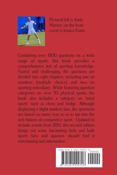 Containing over 1500 questions on a wide range of sports, this book provides a comprehensive test of sporting knowledge. Varied and challenging, the questions are divided into eight chapters, including one on numbers (multiple choice) and two on sporting miscellany. While featuring question categories on over 30 physical sports, the book also includes a category on 'mind sports' such as chess and bridge. The questions have a slight modern bias, but earlier eras are not neglected in order to tap into the rich history of competitive sport. Updated to include events from 2012, this second edition brings out some fascinating facts and both sports fans and quizzers should find it entertaining and informative.