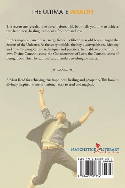 The secrets are revealed like never before. This book tells you how to achieve true happiness, healing, prosperity, freedom and love. In this unprecedented new energy fiction, a fifteen year old boy is taught the Secrets of the Universe. As the story unfolds, the boy discovers his real identity and how, by using certain techniques and practices, he is able to come into his own Divine Consciousness, the Consciousness of Love, the Consciousness of Being, from which he can heal and manifest anything he wants… A Must Read for achieving true happiness, healing and prosperity. This book is divinely inspired, transformational, easy to read and magical.