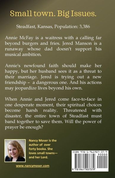 Steadfast, Kansas, Population: 3,386 Annie McFay is a waitress with a calling far beyond burgers and fries. jered Manson is a runaway whose dad doesn't support his musical ambition. New ways clash with the old. Annie's newfound faith should make her happy, but her husband sees it as a threat to their marriage. Jered is trying out a new friendship - a dangerous one. And his actions may jeopardize lives besides his own. When Annie and Jered come face-to-face in one desperate moment, their spiritual choices become harsh reality. Threatened with disaster, the entire town of Steadfast must band together to save them. Will the power of prayer be enough?