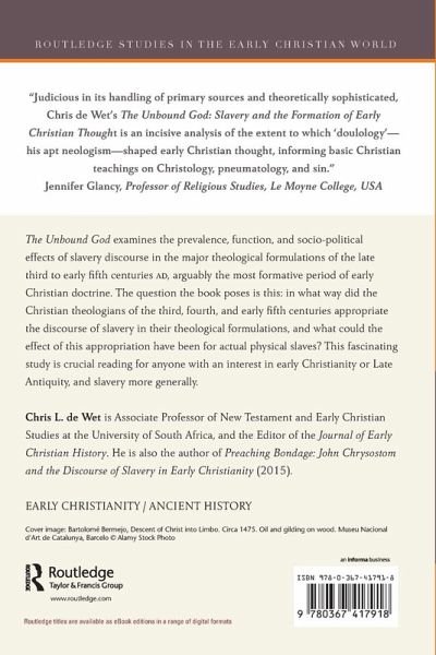 Judicious in its handling of primary sources and theoretically sophisticated, Chris de Wet's The Unbound God: Slavery and the Formation of Early Christian Thought is an incisive analysis of the extent to which "doulology"-his apt neologism-shaped early Christian thought, informing basic Christian teachings on Christology, pneumatology, and sin.