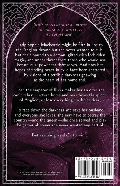 She's been offered a crown but taking it could cost her everything... Lady Sophie Mackenzie might be fifth in line to the Anglion throne but she never wanted to rule. But she's bound to a demon, gifted with forbidden magic, and under threat from those who would use her unusual power for themselves. And now her hopes of finding peace in exile have been shattered by visions of a terrible darkness gnawing at the heart of her homeland. Then the emperor of Illvya makes her an offer she can't refuse-return home and overthrow the queen of Anglion, or lose everything she holds dear. To face down the darkness and save her husband and everyone she loves, she may have to betray the country-and the queen-she once served and play the games of power she never wanted any part of. But can she play them to win...