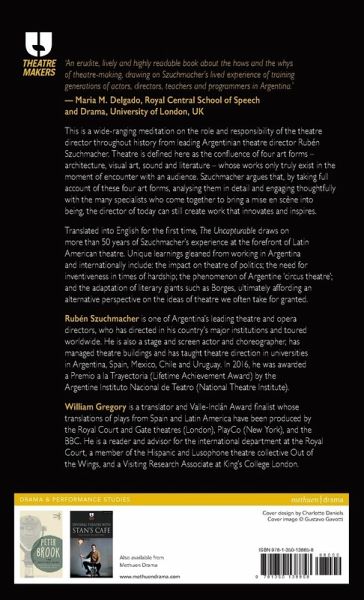 The Uncapturable is a wide-ranging reflection on the art of the mise en scène from the perspective of leading Argentinian theatre director Rubén Szuchmacher. It offers a timely and concise, though comprehensive, survey of the role and responsibility of the theatre director from the earliest times to the twenty-first century. Szuchmacher defines theatre as the confluence of four art forms - architecture, visual art, sound and literature - whose works only truly exist in the moment of encounter with an audience. He argues that, by taking full account of these four art forms, analysing them in detail and engaging thoughtfully with the many specialists who come together to bring a mise en scène into being, the director of today can still create work that innovates and inspires. The Uncapturable is as valuable to the apprentice director emerging from their training as it is to the veteran in need of fresh reflection. Szuchmacher draws on the unique learnings gleaned from working in Argentina, be it the impact on theatre of politics, the need for inventiveness in times of hardship, the phenomenon of Argentine 'circus theatre' or the adaptation of literary giants such as Borges, affording the Anglophone reader an alternative perspective on the ideas of theatre we often take for granted. Szuchmacher offers a unique blend of global knowledge, historical awareness and a pragmatic, resourceful and creative approach from a theatre artist working in Latin American through decades of change. The book is translated from the Spanish by William Gregory.