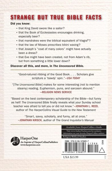 Strange but True Bible Facts Did you know: that King David swore like a sailor? that the Book of Ecclesiastes encourages drinking, especially beer? that mandrakes were the biblical equivalent of Viagra(R)? that the law of Moses prescribes bikini waxing? that Joseph's "coat of many colors" might have actually been a dress? that Eve might have been created, not from Adam's rib, but from something a little lower down? Discover all this, and more, in The Uncensored Bible.
