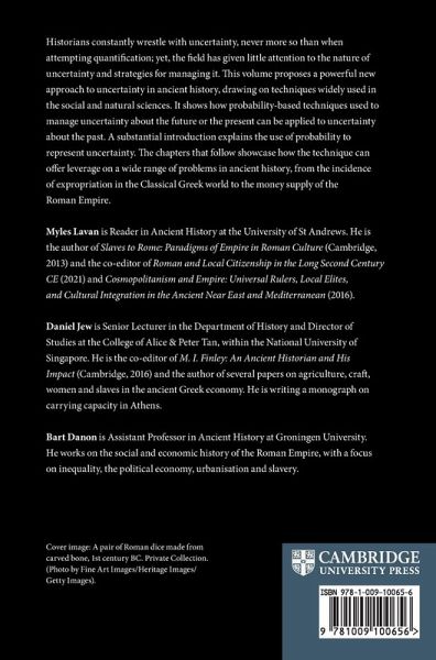 "Introduces historians of pre-modern periods to a powerful, probability-based approach to uncertainty, drawing on techniques widely used in the social and natural sciences. Showcases how these practices can be applied to a wide range of problems in ancient history, whilst a substantial introduction explains the method"--