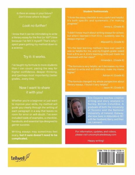 Is there an essay in your future? Don't know where to begin? Look no further! I know that it can be intimidating to write a literary essay for the first (or 100th) time because I've felt it myself! That's why I spent years getting my method down to a science. Try it: it works. I've taught my formula to more students than I can count, paving the way for higher confidence, deeper thinking, and (perhaps most importantly) better grades...every time. Now I want to share it with you! Whether you're a beginner or just want to improve your skills, my method will guide you clearly through the writing of each paragraph in a way that leaves no room for error or self-doubt. I've even included loads of examples, a checklist, handouts, and essential tips designed to garner success. Writing essays may sometimes feel scary, but it sure doesn't need to be complicated.