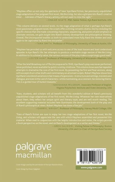 "Fans of Rand's fiction are sure to enjoy her two stage adaptations of her first novel, We The Living, and scholars will appreciate the care with which Mayhew assembled and presented this material. When read in conjunction with the helpful introduction and notes, the scripts provide a fresh perspective on the novel, and on Rand's development as a writer and thinker." - Greg Salmieri, Visiting Fellow in Philosophy, Boston University, USA and Co-Chair of the Ayn Rand Society
