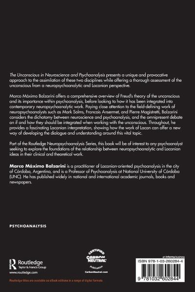 Marco Máximo Balzarini offers a comprehensive overview of Freud's theory of the unconscious and its importance within psychoanalysis, before looking to how it has been integrated into contemporary neuropsychoanalytic work. Paying close attention to the field-defining work of neuropsychoanalysts such as Mark Solms, Francois Ansermet, and Pierre Magistretti, Balzarini considers the dichotomy between neuroscience and psychoanalysis, and the omnipresent debate on if and how they should be integrated when working with the unconscious. Throughout, he provides a fascinating Lacanian interpretation, showing how the work of Lacan can offer a new way of developing the dialogue and understanding around this vital topic.