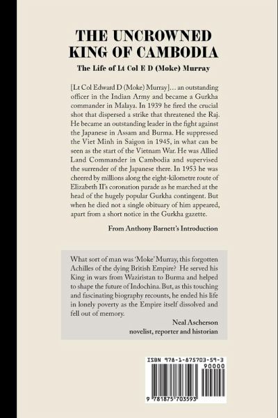 [Lt Col Edward D (Moke) Murray]... an outstanding officer in the Indian Army and became a Gurkha commander in Malaya. In 1939 he fired the crucial shot that dispersed a strike that threatened the Raj. He became an outstanding leader in the fight against the Japanese in Assam and Burma. He suppressed the Viet Minh in Saigon in 1945, in what can be seen as the start of the Vietnam War. He was Allied Land Commander in Cambodia and supervised the surrender of the Japanese there. In 1953 he was cheered by millions along the eight-kilometre route of Elizabeth II's coronation parade as he marched at the head of the hugely popular Gurkha contingent. But when he died not a single obituary of him appeared, apart from a short notice in the Gurkha gazette. From Anthony Barnett's Introduction What sort of man was 'Moke' Murray, this forgotten Achilles of the dying British Empire? He served his King in wars from Waziristan to Burma and helped to shape the future of Indochina. But, as this touching and fascinating biography recounts, he ended his life in lonely poverty as the Empire itself dissolved and fell out of memory. Neal Ascherson, novelist, reporter and historian