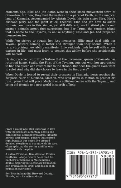 Moments ago, Ellie and Jen Aston were in their small midwestern town of Groverton, but now, they find themselves on a parallel Earth, in the magical land of Kiamada. Accompanied by Alistair Doyle, his twin sister Kira, Kira's husband Jerry, and the giant Wiler, Theonus, Ellie and Jen have to adapt to their new lives in this similar, yet still different, world. Weird plants and strange animals aren't that surprising, but Bar Truga, the sentient island that is home to the Tayamu, is unlike anything Ellie and Jen had prepared themselves for. While Jen strives to regain her lost memories, Ellie must deal with her Tayamu powers coming in faster and stronger than they should. When a rare, surprising new ability manifests, Ellie suddenly finds herself with a new partner in life, and must learn to control this ability before she accidentally kills herself. Having received word from Nature that the uncrowned queen of Kiamada has returned home, Seaile, the First of the Tayamu, sets out with her apprentice to find the queen and restore her to the throne. But does the queen even want to rule? And why did she choose to leave in the first place? When Doyle is forced to reveal their presence in Kiamada, news reaches the despotic ruler of Kiamada, Mathon, who sets plans in motion to protect his rule…plans that will place Mathon on a collision course with the Tayamu, and bring old friends to a new world in search of help.