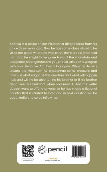 Aaditya is a police officer, his brother disappeared from his office three years ago. Now he has some clues about it. He visits the place where he was seen, there an old man told him that he might have gone toward the mountain and that place is dangerous and you should take some weapon with you. He gave Aaditya a Handgun. While he travels toward the mountain he encounters some creature and now just what might be this creature and what will happen next and will he be able to find his brother or if his brother dead. You will find that when you read it. And the writer doesn't want to offend anyone so he has made a fictional country that is related to India and in next addition will be about India and so do follow me.