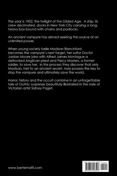 The year is 1902 - the twilight of the Gilded Age. A ship, its crew decimated, docks in New York City carrying a strange cargo: a long, heavy box held bounds with chains and padlocks. An ancient vampyre has arrived seeking the source of an unlimited power. When young society belle Madison Blanchford becomes the vampyre's next target, her suitor Doctor Jordan Moore joins with renegade Anglican priest Alfred James Montague and Percy Masters, a former soldier, to save her. In the process, they discover that only Madison, heir to an ancient secret, may possess the key to stop the vampyre and ultimately save the world. Suspense, history and the occult combine in an unforgettable Gothic tale beautifully illustrated in the style of Victorian artist Sidney Paget.