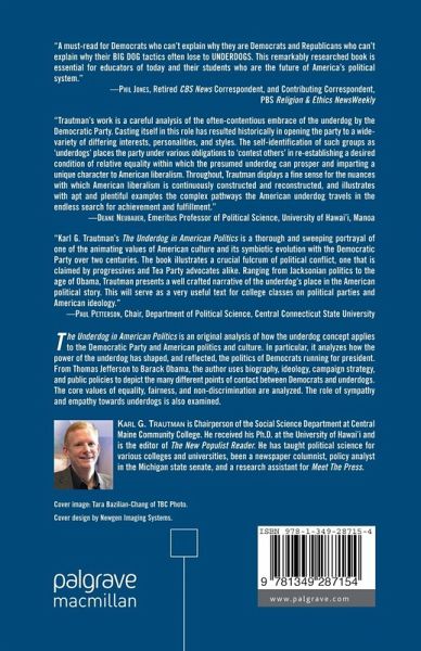 "Karl G. Trautman s The Underdog in American Politics is a thorough and sweeping portrayal of one of the animating values of American culture and its symbiotic evolution with the Democratic Party over two centuries. The book illustrates a crucial fulcrum of political conflict, one that is claimed by progressives and Tea Party advocates alike. Ranging from Jacksonian politics to the age of Obama, Trautman presents a well crafted narrative of the underdog s place in the American political story. This will serve as a very useful text for college classes on political parties and American ideology." - Paul Petterson, Chair, Department of Political Science, Central Connecticut State University