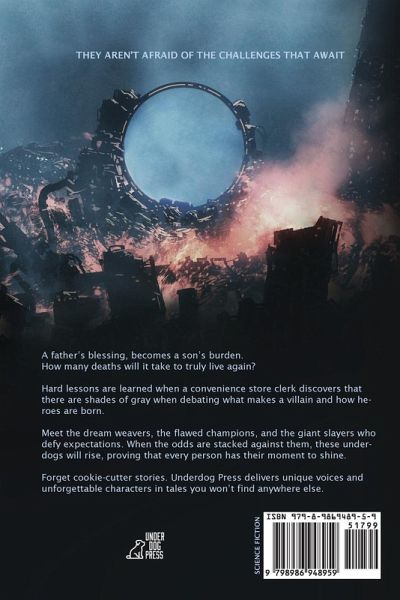 In a world where heroes soar and villains lurk, these are the stories of those who defy expectations, who rise from the ashes of adversity and carve their own paths in a world that tries to hold them back. Follow a wingless boy who dares to challenge the sky, building a rocket from scraps, snatching his dreams from the mouth of despair. Hard lessons are learned when a convenience store clerk learns that there are shades of gray when debating what makes a villain and how heroes are born. A young woman seeks vengeance in a world of magic and betrayal, only to discover the true meaning of sacrifice. This father's love transcends death, leaving a legacy of hope and healing in a world consumed by darkness. Even the smallest among us can make a difference when a goblin jester embarks on a perilous quest to save his people, proving that heart, determination, and a little cunning can overcome any obstacles. When a mother's desperation leads her to a dark bargain, her love for her daughter remains unwavering. Will this be enough to save them from the danger lurking in her dreams? What harm is there in taking a last-minute job to smuggle some goods aboard an unexpected ship? When a galactic smuggler risks everything for a chance at redemption, she proves that even in the darkest corners of the universe, hope can still ignite. These are the underdogs. And their stories will ignite your imagination. Underdog Press presents extraordinary tales where heroes come in all shapes and sizes. Meet the dream weavers, the flawed champions, and the giant slayers who defy expectations. When the odds are stacked against them, these underdogs will rise, proving that every person has their moment to shine. Forget cookie-cutter stories. Underdog Press delivers unique voices and unforgettable characters in tales you won't find anywhere else. Thank you for being a reader who celebrates the power of the underdog! This is their day. This is their fight.