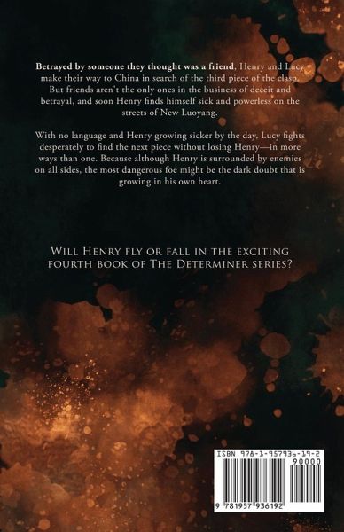 Betrayed by someone they thought was a friend, Henry and Lucy make their way to China in search of the third piece of the clasp. But friends aren't the only ones in the business of deceit and betrayal, and soon Henry finds himself sick and powerless on the streets of New Luoyang. With no language and Henry growing sicker by the day, Lucy fights desperately to find the next piece without losing Henry--in more ways than one. Because although Henry is surrounded by enemies on all sides, the most dangerous foe might be the dark doubt that is growing in his own heart. Will Henry fly or fall in the exciting fourth book of The Determiner series? Enjoy this lower young adult novel with turns, twists, and plenty of cliffhangers!