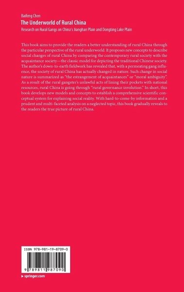This book aims to provide the readers a better understanding of rural China through the particular perspective of the rural underworld. It proposes new concepts to describe social changes of rural China by comparing the contemporary rural society with the acquaintance society-the classic model for depicting the traditional Chinese society. The author's down-to-earth fieldwork has revealed that, with a permeating gang influence, the society of rural China has actually changed in nature. Such change in social nature is summarized as "the estrangement of acquaintances" or "moral ambiguity". As a result of the rural gangster's unlawful acts of lining their pockets with national resources, rural China is going through "rural governance involution." In short, this book develops new models and concepts to establish a comprehensive scientific conceptual system for explaining social reality. With hard-to-come-by information and a prudent and multi-faceted analysis on a neglected topic, this book gradually reveals to the readers the true picture of rural China.