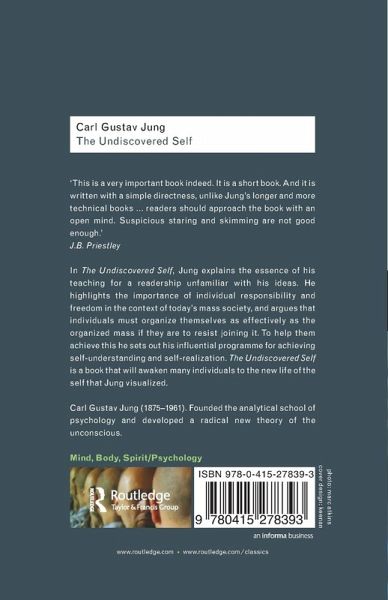 In The Undiscovered Self Jung explains the essence of his teaching for a readership unfamiliar with his ideas. He highlights the importance of individual responsibility and freedom in the context of today's mass society, and argues that individuals must organize themselves as effectively as the organized mass if they are to resist joining it. To help them achieve this he sets out his influential programme for achieving self-understanding and self-realization. The Undiscovered Self is a book that will awaken many individuals to the new life of the self that Jung visualized.