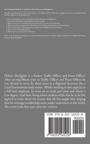 The Undying Faith Book 2. A guide to a Life of Success and Happiness/ This, the second book in the series of four books, read together with the other three, supplies answers to your questions and provides solutions to your problems if:You are looking for a sure case formula for achieving success and happiness. Are faced with problems and begining to doubt yourself. Want to learn how to use faith to do or become what you want to do or become. Want to learn how to tap into the stupendous power inherent and latent in every human being. Want to learn how to use mind power to change your condidions and circumstance. Want to effect self transformation. Want to garner a more positive self esteem. If any or all of the above describes your current situation then look no further, help id at hand, press the Buy now button before the price increases.