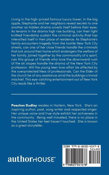 Living in the high-priced famous luxury tower, in the big apple, Stephanie and her neighbors reveal secrets to one another as hidden drama unveils itself before their eyes. As tenants in the drama high rise building, can their tight knitted friendship sustain the criminal activity that has intensified itself in their place of residence. As Stephanie's family encounters tragedy from the hostile New York City streets, can one of her close friends handle the criminals that lurk around their home which endangers the welfare of her family. Joined together by the commonality of a sport, can this group of friends who love the downward rush of the ski slopes handle the drama of the New York City profession. Will the young teen love affair be affected by the overprotected Ness of professionals. Can the Elder of the church be of any assistance amid the buildings criminal mischief. This eye-catching entertainment out of New York City reads like a thriller.