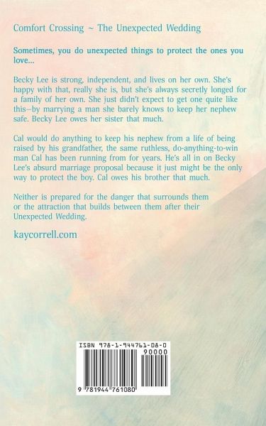 Sometimes, you do unexpected things to protect the ones you love... Becky Lee is strong, independent, and lives on her own. She's happy with that, really she is, but she's always secretly longed for a family of her own. She just didn't expect to get one quite like this-by marrying a man she barely knows to keep her nephew safe. Becky Lee owes her sister that much. Cal would do anything to keep his nephew from a life of being raised by his grandfather, the same ruthless, do-anything-to-win man Cal has been running from for years. He's all in on Becky Lee's absurd marriage proposal because it just might be the only way to protect the boy. Cal owes his brother that much. Neither is prepared for the danger that surrounds them or the attraction that builds between them after their Unexpected Wedding.