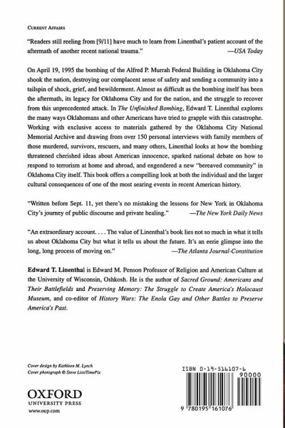 Linenthal explores the ways Oklahomans and Americans have tried to grapple with the catastrophe. Working with exclusive access to materials, he looks at how the bombing threatened ideas about American innocence, sparked debate on how to respond to terrorism at home and abroad, and engendered a new "bereaved community" in Oklahoma City itself. Illustrations.