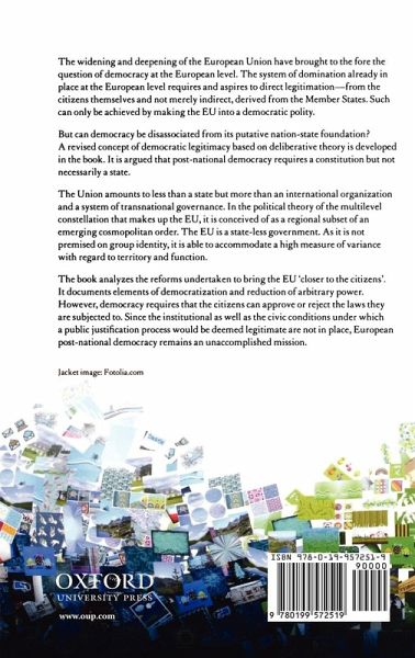 1: Introduction: European Democracy in Transformation Part I The Democratic Challenge 2: The Quest for Democratization 3: Democratic Legitimacy Through Deliberation? Part II Elements of Democratization 4: Europe - On the Search for its Legitimacy 5: Chartering Europe 6: The Cosmopolitan Dimension 7: A layered European Public Sphere Part III What Kind of Legitimate Order? 8: Government or Transnational Governance? 9: Government without a State 10: Parliamentary Democracy Without a Demos Finale - An Unaccomplished Post-National Democracy Bibliography Index