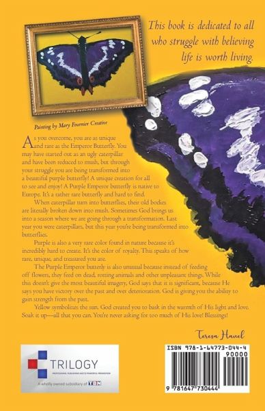As you overcome, you are as unique and rare as the Emperor Butterfly. You may have started out as an ugly caterpillar and have been reduced to mush, but through your struggle you are being transformed into a beautiful purple butterfly! A unique creation for all to see and enjoy! A Purple Emperor butterfly is native to Europe. It's a rather rare butterfly and hard to find. When caterpillar turn into butterflies, their old bodies are literally broken down into mush. Sometimes God brings us into a season where we are going through a transformation. Last year you were caterpillars, but this year you're being transformed into butterflies. Purple is also a very rare color found in nature because it's incredibly hard to create. It's the color of royalty. This speaks of how rare, unique, and treasured you are. The Purple Emperor butterly is also unusual because instead of feeding off flowers, they feed on dead, rotting animals and other unpleasant things. While this doesn't give the most beautiful imagery, God says that it is significant, because He says you have victory over the past and over deterioration. God is giving you the ability to gain strength from the past. Yellow symbolizes the sun. God created you to bask in the warmth of His light and love. Soak it up--all that you can. You're never asking for too much of His love! Blessings!