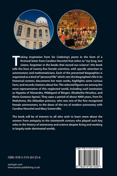 Taking inspiration from Siv Cedering's poem in the form of a fictional letter from Caroline Herschel that refers to "my long, lost sisters, forgotten in the books that record our science", this book tells the lives of twenty-five female scientists, with specific attention to astronomers and mathematicians. Each of the presented biographies is organized as a kind of "personal file" which sets the biographee's life in its historical context, documents her main works, highlights some curious facts, and records citations about her. The selected figures are among the most representative of this neglected world, including such luminaries as Hypatia of Alexandra, Hildegard of Bingen, Elisabetha Hevelius, and Maria Gaetana Agnesi. They span a period of about 4000 years, from En HeduAnna, the Akkadian princess, who was one of the first recognized female astronomers, to the dawn of the era of modern astronomy with Caroline Herschel and Mary Somerville. The book will be of interest to allwho wish to learn more about the women from antiquity to the nineteenth century who played such key roles in the history of astronomy and science despite living and working in largely male-dominated worlds.