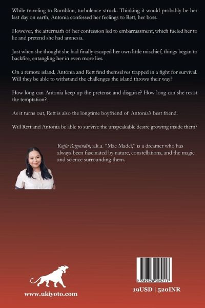 While traveling to Romblon, turbulence struck. Thinking it would probably be her last day on earth, Antonia confessed her feelings to Rett, her boss. However, the aftermath of her confession led to embarrassment, which fueled her to lie and pretend she had amnesia. Just when she thought she had finally escaped her own little mischief, things began to backfire, entangling her in even more lies. On a remote island, Antonia and Rett find themselves trapped in a fight for survival. Will they be able to withstand the challenges the island throws their way? How long can Antonia keep up the pretense and disguise? How long can she resist the temptation? As it turns out, Rett is also the longtime boyfriend of Antonia's best friend. Will Rett and Antonia be able to survive the unspeakable desire growing inside them?