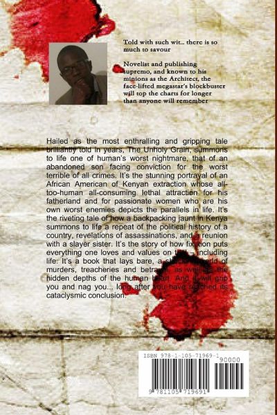 Hailed as the most enthralling and gripping tale brilliantly told in years, The Unholy Grail, summons to life one of human's worst nightmare, that of an abandoned son facing conviction for the worst terrible of all crimes. It's the stunning portrayal of an African American of Kenyan extraction whose all-too-human all-consuming lethal attraction for his fatherland and for passionate women who are his own worst enemies depicts the parallels in life. It's the riveting tale of how a backpacking jaunt in Kenya summons to life a repeat of the political history of a country, revelations of assassinations, and a reunion with a slayer sister. It's the story of how fixation puts everything one loves and values on trial - including life. It's a book that lays bare, a shocking world of murders, treacheries and betrayal, as well as the hidden depths of the human heart. And it will grip you and nag you... long after you have reached its cataclysmic conclusion.