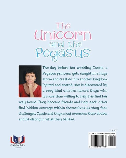 The day before her wedding Cassie, a Pegasus princess, gets caught in a huge storm and crashes into another kingdom. Injured and scared, she is discovered by a very kind unicorn named Onyx who is more than willing to help her find her way home. They become friends and help each other find hidden courage within themselves as they face challenges. Cassie and Onyx must overcome their doubts and be strong in what they believe.