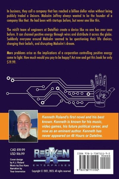 In business, they call a company that has reached a billion dollar value without being publicly traded a Unicorn. Malcolm Joffrey always wanted to be the founder of a company like that. He had been with startups before, but never one like this. The misfit team of engineers at Dataffair create a device like no one has ever seen before. It can channel positive energy through wires and distribute it across the globe. Suddenly everyone around Malcolm seemed to be questioning their life choices, changing their beliefs, and disrupting Malcolm's dream. More problems arise as the implications of a corporation controlling positive energy come to light. How much would you pay to be happy? Act now and get this book for only $19.99!