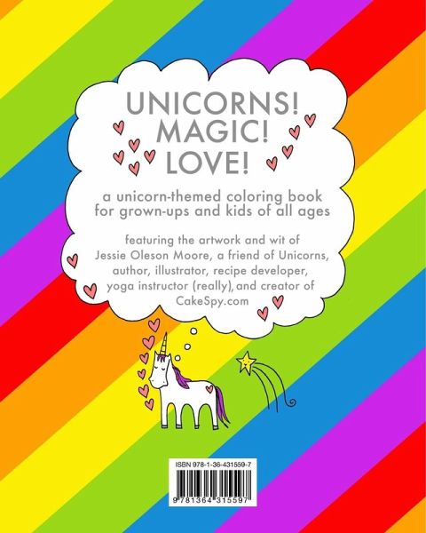 Gather up your crayons or colored pencils, and make sure you've got all the colors of the rainbow! This is undoubtedly the most amazing coloring book ever created, and is officially Unicorn Approved! Featuring a myriad of magical unicorn illustrations, this book is designed for grown-ups but suitable for kids of all ages. It features the witty and whimsical artwork of Jessie Oleson Moore, an official friend of Unicorns, author, illustrator, recipe developer, yoga instructor (really), and creator of the popular dessert lifestyle website CakeSpy.com.