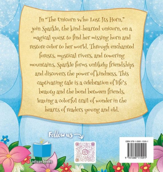 Discover the enchanting tale of "The Unicorn Who Lost Its Horn: A Tale of How to Catch and Spread Kindness." It is the heartwarming story of kindness, sharing, friendship, courage, and the magic of color. Join Sparkle, a beautiful unicorn, on her quest to restore her magnificent horn and bring color back to her world. They say you should never let a unicorn scribble but Sparkle breaks the mold as she paints the world with color! Along her journey, Sparkle encounters a wise owl, a cunning fox, and a elderly turtle, all while exploring enchanting forests, shimmering rivers, and towering mountains. When Sparkle finally confronts a dragon guarding her missing horn, she teaches the power of kindness and sharing. This captivating story is a celebration of the beauty in our world and the bonds that tie us all together. Perfect for readers of all ages, "The Unicorn Who Lost Its Horn: A Tale of How to Catch and Spread Kindness" will leave a lasting impression and a trail of color in your heart.