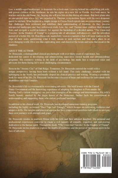 Lou, a middle-aged bookkeeper who hates his job and his life, decides to leave the Northeast behind, including his wife and two adult children, to head south to create a new life in Florida. While attempting to ask his old girlfriend, Jay, to flee with him, the two are carjacked by Thomas, who seeks asylum for himself and his people. Their journey south takes them not just to Cocoa Beach, Florida, but also to the jungles of Peru, and finally to the Bermuda triangle. The story twists and turns, giving new meaning to "asylum seeker," as the three confront challenges to the resilience in the shadow of Trump. About the Author Dr. Breazeale is a clinical psychologist who has worked in the field for over thirty years. He has developed and administered numerous mental health and substance-abuse programs, and has written extensively in the field of psychology. Breazeale writes about the things he knows. He was born with a birth defect, the absence of a left hand, in the "Atomic City," Oak Ridge, Tennessee, where his parents lived and worked. He has worn a prosthetic hook most of his life. Having grown up in the South as a child with a disability, Dr. Breazeale has focused much of his clinical practice and writing on those with a disability and their families. He worked briefly for the United States Government. He and his wife adopted their daughter in Peru when she was three months old in the middle of a major offensive against the government by the Shining Path, a communist-supported terrorist group. Most of Dr. Breazeale's wife's family died in the Holocaust.