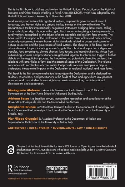 Food security and sustainable agri-food systems, responsible governance of natural resources, and human rights are among the key themes of the new millennium. The Declaration is the first internationally negotiated instrument bridging these issues, calling for a radical paradigm change in the agricultural sector while giving voice to peasants and rural workers, recognised as the drivers of more equitable and resilient food systems. The book unfolds the impact of the Declaration in the wider realm of law and policy making, especially concerning the new human rights standards related to access and control of natural resources and the governance of food systems. The chapters in the book touch on a broad array of topics, including women's rights, the role of and impact on indigenous peoples, food sovereignty, climate change, land tenure, and agrobiodiversity. Voices from outstanding scholars and practitioners are gathered together to inform and trigger a further debate on the negotiation process, the innovative and potentially disruptive contents, the relations with other fields of law, and the practical scope of the Declaration. The volume concludes with a collection of case studies that provide concrete examples to help us understand the potential impacts of the Declaration at regional, national, and local levels.