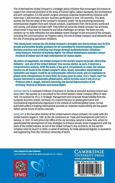 The United Nations Global Compact is a strategic policy initiative that encourages businesses to support ten universal principles in the areas of human rights, labor standards, the environment, and anti-corruption. It is the world's largest voluntary corporate responsibility initiative with more than 7,500 business and non-business participants in over 130 countries. This book reviews the first ten years of the Compact's existence (2000-2010) by presenting exclusively commissioned chapters from well-known scholars, practitioners from the business world and civil society, and Global Compact staff. They reflect on what the Global Compact has achieved, what trends it may have to respond to, and what challenges are ahead. The book contains not only up-to-date reflections but also debates recent changes to the structure of the Compact, including the Communication on Progress policy, the role of Global Compact Local Networks, and the role of emerging specialized initiatives.