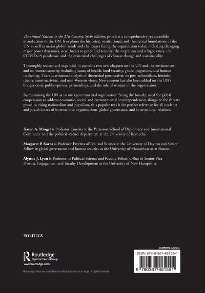 The United Nations in the 21st Century, Sixth Edition, provides a comprehensive yet accessible introduction to the UN. It explores the historical, institutional, and theoretical foundations of the UN as well as major global trends and challenges facing the organization today, including changing major power dynamics, new threats to peace and security, the migration and refugee crises, the COVID-19 pandemic, and the existential challenges of climate change and sustainability.