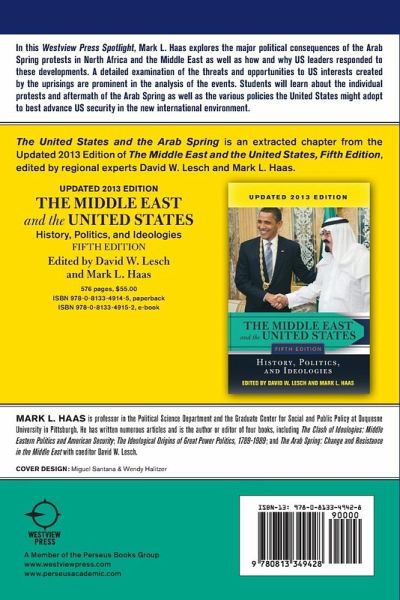 In this Westview Press Spotlight, Mark L. Haas explores the major political consequences of the Arab Spring protests in North Africa and the Middle East as well as how and why US leaders responded to these developments. A detailed examination of the threats and opportunities to US interests created by the uprisings are prominent in the analysis of the events. Students will learn about the individual protests and aftermath of the Arab Spring as well as the various policies the United States might adopt to best advance US security in the new international environment. The United States and the Arab Spring is an extracted chapter from the 2013 Updated Edition of The Middle East and the United States, Fifth Edition, edited by regional experts David W. Lesch and Mark L. Haas. In the full-length edition of the text, scholars and diplomats from the Middle East, Europe, and North America provide an objective, cross-cultural assessment of U.S. policy toward the Middle East and Middle Eastern political history from the First World War through the present.