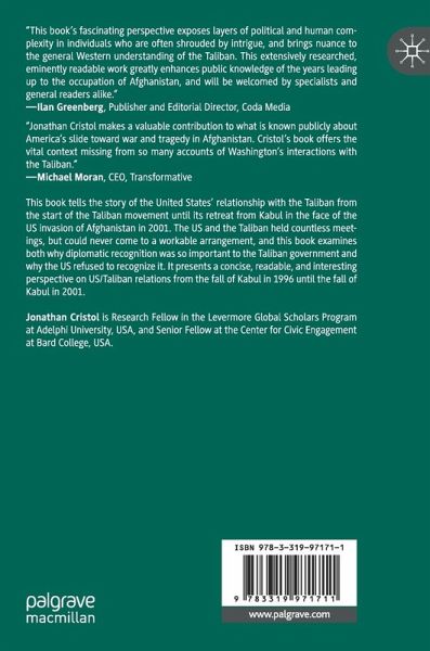 This book tells the story of the United States' relationship with the Taliban from the start of the Taliban movement until its retreat from Kabul in the face of the US invasion of Afghanistan in 2001. The US and the Taliban held countless meetings, but could never come to a workable arrangement, and this book examines both why diplomatic recognition was so important to the Taliban government and why the US refused to recognize it. It presents a concise, readable, and interesting perspective on US/Taliban relations from the fall of Kabul in 1996 until the fall of Kabul in 2001.