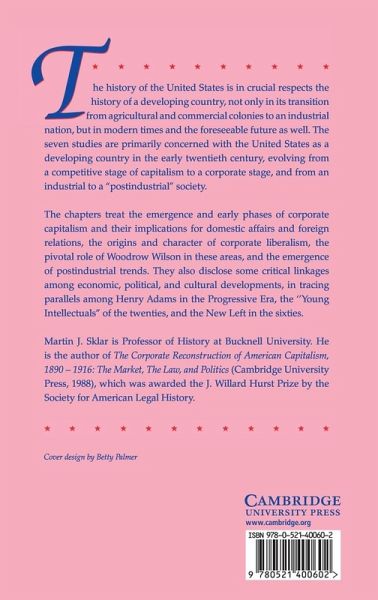The history of the United States is in crucial respects the history of a developing country, not only in its transition from agricultural and commercial colonies to an industrial nation, but in modern times and the foreseeable future as well. The seven studies in this book, first published in 1992, are primarily concerned with the United States as a developing country in the early twentieth century, evolving from a competitive stage of capitalism to a corporate stage, and from an industrial to a 'postindustrial' society. The chapters treat the emergence and early phases of corporate capitalism and their implications for domestic affairs and foreign relations, the origins and character of corporate liberalism, the pivotal role of Woodrow Wilson in these areas, and the emergence of postindustrial trends. They also explore some critical linkages among economic, political, and cultural developments, in tracing parallels among Henry Adams in the Progressive Era, the 'Young Intellectuals' of the twenties, and the New Left in the sixties.