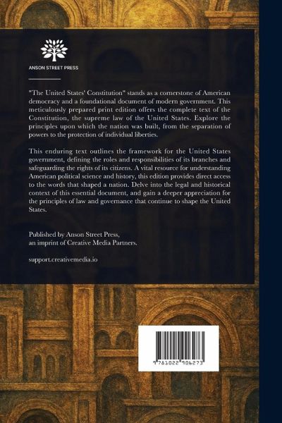 "The United States' Constitution" stands as a cornerstone of American democracy and a foundational document of modern government. This meticulously prepared print edition offers the complete text of the Constitution, the supreme law of the United States. Explore the principles upon which the nation was built, from the separation of powers to the protection of individual liberties. This enduring text outlines the framework for the United States government, defining the roles and responsibilities of its branches and safeguarding the rights of its citizens. A vital resource for understanding American political science and history, this edition provides direct access to the words that shaped a nation. Delve into the legal and historical context of this essential document, and gain a deeper appreciation for the principles of law and governance that continue to shape the United States. This work has been selected by scholars as being culturally important, and is part of the knowledge base of civilization as we know it. This work is in the public domain in the United States of America, and possibly other nations. Within the United States, you may freely copy and distribute this work, as no entity (individual or corporate) has a copyright on the body of the work. Scholars believe, and we concur, that this work is important enough to be preserved, reproduced, and made generally available to the public. We appreciate your support of the preservation process, and thank you for being an important part of keeping this knowledge alive and relevant.