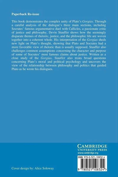 Stauffer demonstrates the complex unity of Plato's Gorgias through a careful analysis of the dialogue's three main sections. This includes Socrates' famous argumentative duel with Callicles, showing how the seemingly disparate themes of rhetoric, justice and the philosophic life are woven together into a coherent whole.