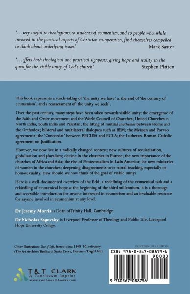 Acknowledgements Contributors Introduction PART ONE: UNITY AND PLURALITY: RECONCEIVING THE DIFFICULTIES 1. Urs Von Arx: Identity, Plurality, Unity - What's the Right Blend? Some Reflections from an Old Catholic Perspective 2. Nicholas Sagovsky: Anglicans and Roman Catholics. A Joint Declaration of Agreement? 3. David Carter: Methodists and the Ecumenical Task 4. Peter McEnhill: The Reformed Tradition and the Ecumenical Task - 'A Vulnerable Catholicity' 5. Jeremy Morris: The Unity We Seek. Prospects for the Local Church 6. Keith Clements: The Future of Ecumenism in Europe 7. Valentin Dedji: Between Christ and Caesar, the Politics of Mission and Ecumenism Encountering African Myths and Realities PART TWO: PROSPECTS FOR ECUMENISM 8. Michael Root: Once More on the Unity We Seek, Testing Ecumenical Models 9. Mary Tanner: The Goal of Visible Unity, Yet Again 10. Jean-Marie Tillard: Ex Tenebris Lux, Ecumenism Enters a New Phase 11. Christopher Hill: Route-planning the Future Ecumenical Journey Conclusion Appendix Index