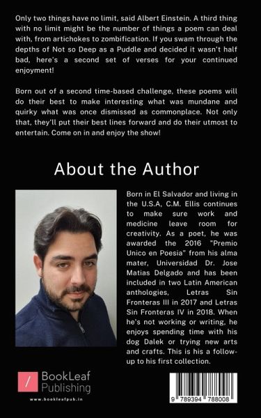 ""Only two things have no limit, said Albert Einstein. A third thing with no limit might be the number of things a poem can deal with, from artichokes to zombification. If you swam through the depths of Not so Deep as a Puddle and decided it wasn't half bad, here's a second set of verses for your continued enjoyment! Born out of a second time-based challenge, these poems will do their best to make interesting what was mundane and quirky what was once dismissed as commonplace. Not only that, they'll put their best lines forward and do their utmost to entertain. Come on in and enjoy the show!""
