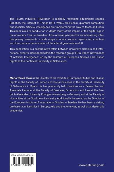 The Fourth Industrial Revolution is radically reshaping educational spaces. Robotics, the Internet of Things (IoT), Web3, blockchain, quantum computing, but specially artificial intelligence are transforming the way to teach and learn. This book aims to conduct an in-depth study of the impact of the digital age in the university. This is carried out from a broad perspective encompassing interdisciplinary viewpoints, a wide range of areas, sectors, regions and countries and the common denominator of the ethical governance of AI. This publication is a collaborative effort between university scholars and international experts, developed within the research group 'EU & Ethics Governance of Artificial Intelligence' led by the Institute of European Studies and Human Rights at the Pontifical University of Salamanca.